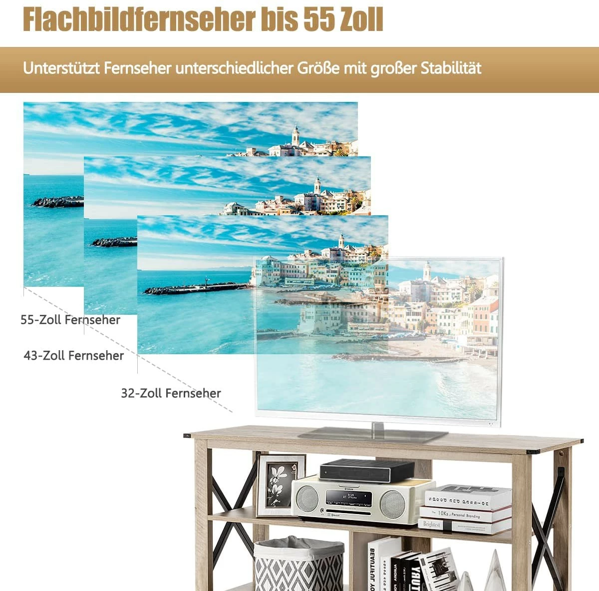 【Ideal für Fernseher bis zu 140 cm】Auf der geräumigen Oberfläche ist Platz für Fernseher mit einer Größe von bis zu 140 cm. Daher ist die TV-Kommode eine optimale Ergänzung für Ihr Wohnzimmer.