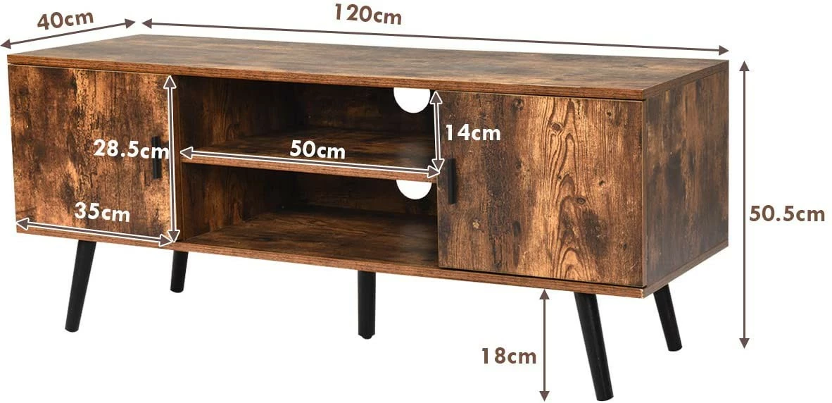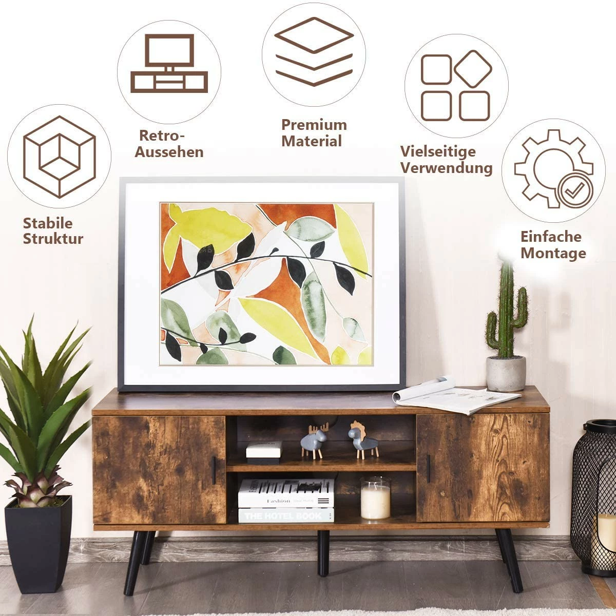 【Ausreichend Stauraum】Dieser Fernsehtisch besitzt 2 Reihen von Regalbrettern auf denen Sie Ihre Kabelbox, Receiver und Fernbedienungen etc. abstellen können. Das offene Design erlaubt es Ihnen, Ihre Gegenstände bequem zu greifen. Zusätzlich erlauben Ihnen die Fächer mit Türen an beiden Seiten das Verwahren von Büchern, Akten und anderem Zubehör.