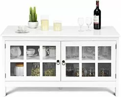 【Magnetismus & Glastüren】Dank der Magnetschlösser lassen sich die Türen der Kommode leicht und leise öffnen und schließen. Die Türen selbst bestehen aus äußerst robustem Hartglas.