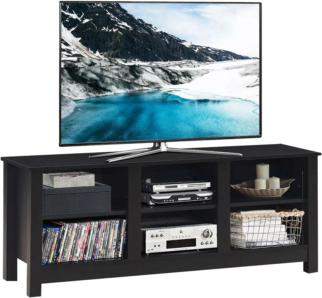 【Große Oberseite & offener Stauraum】The TV-Schrank eignet sich für die meisten Flachbildfernseher bis zu einer Größe von 60 Zoll, außerdem kann er bis zu 40 kg tragen. Auf den 6 Regalen ist viel Platz für Blu-ray-Player, Spielekonsolen und weiterem Zubehör.