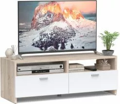 【Umfassender Stauraum】 Auf den 2 offenen Regalen lassen sich verschiedenste Geräte wie Spielekonsolen, aber auch Bücher unterbringen. Die zwei Schubladen bieten Ihnen ebenfalls genügend Platz, um Gegenstände ordentlich zu verstauen.