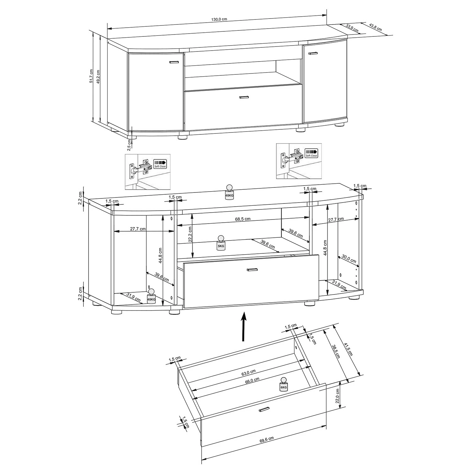 - Innenmaße Schubladen: 63 x 12,6 x 38,5 cm