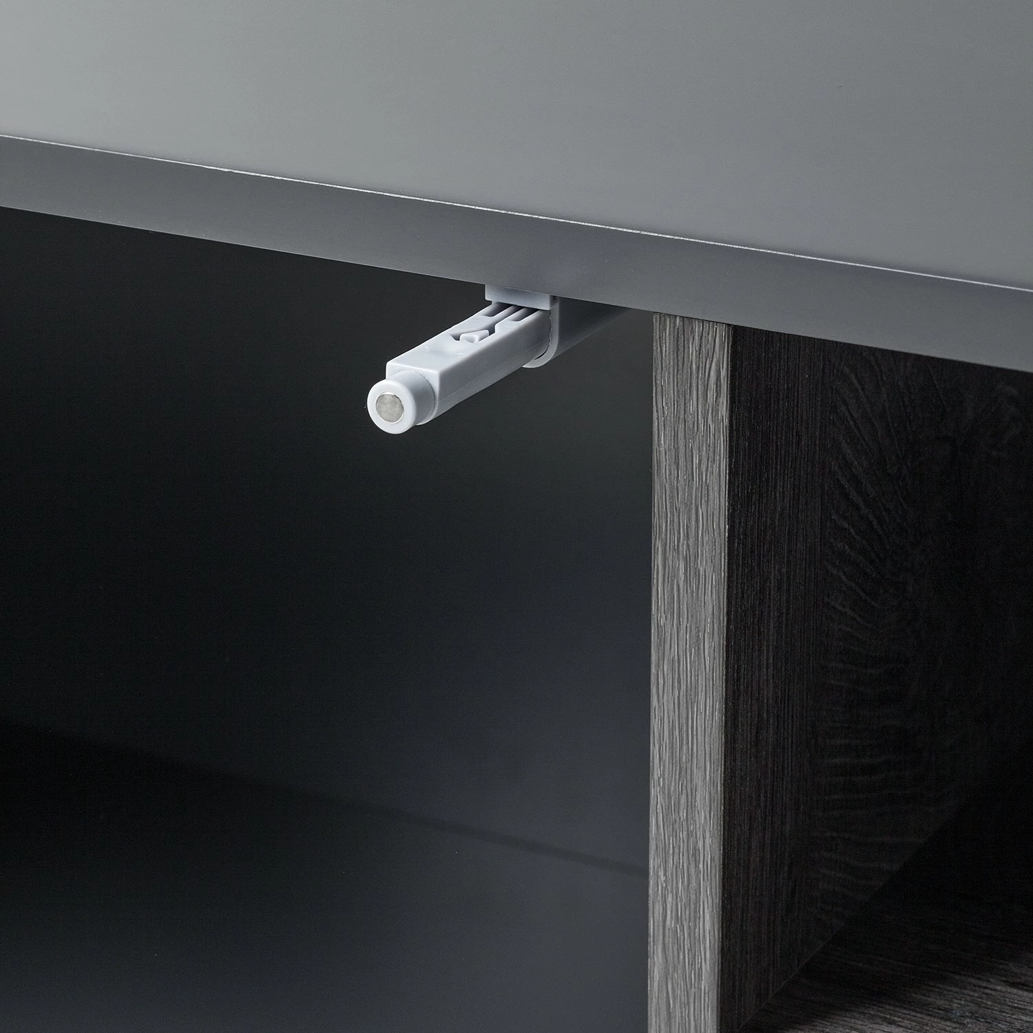 - Front & Korpus: MDF (Mitteldichte Holzfaserplatte), lackiert, foliert & beschichtet