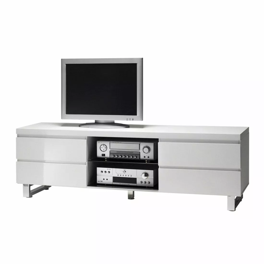 - MDF, Hochglanz lackiert Füße: Metall, verchromt Glas