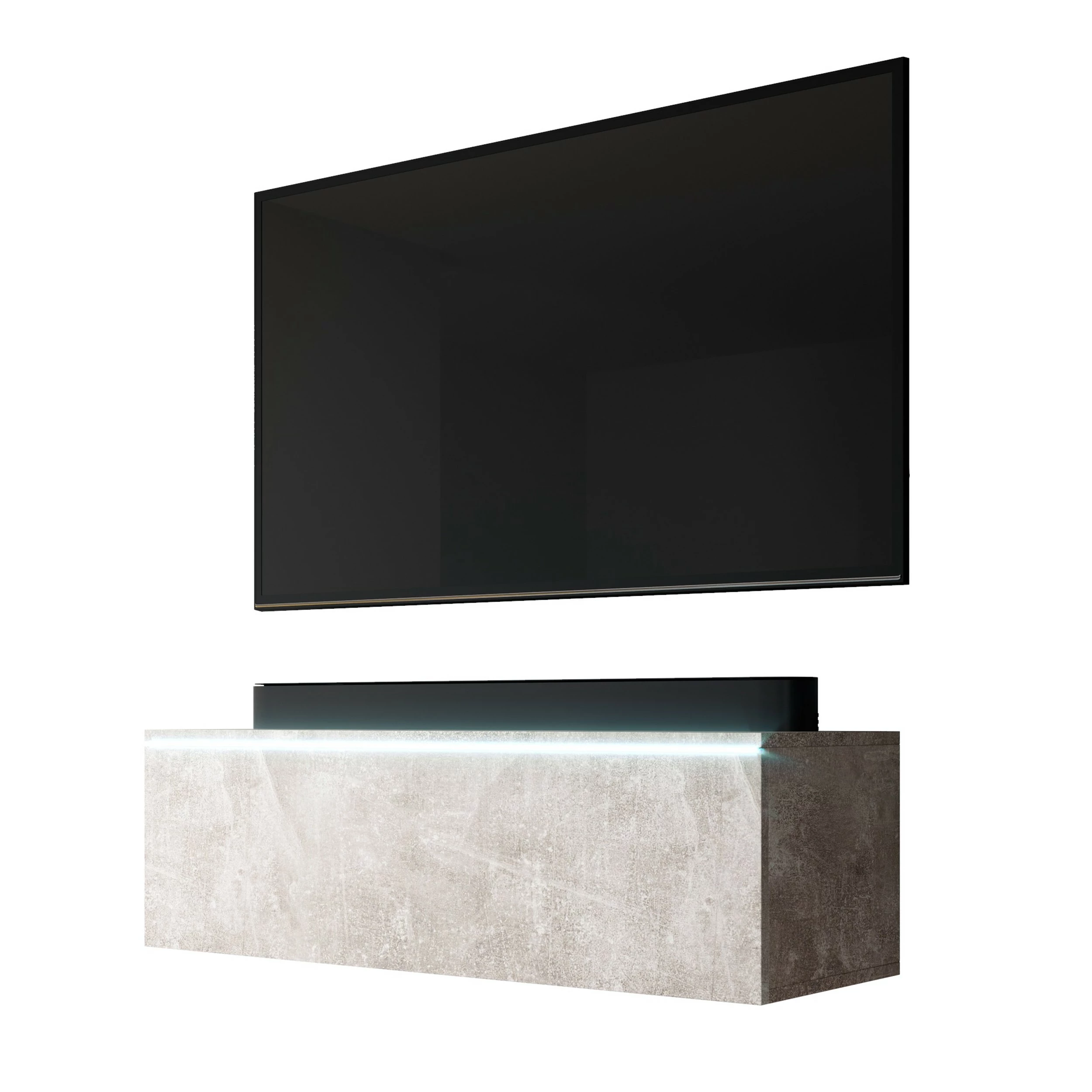 Der elegante TV-Schrank mit moderner LED-Beleuchtung ist optimal für Wohnzimmer oder Jugendzimmer geeignet. Sein modernes Design und minimalistische Optik fügen sich optimal in bestehende Wohnungseinrichtung ein. Zwei Ablagen (je B47,6 x H31 x T28,6 cm) mit einer „Push-Click“-Tür bieten viel Stauraum für DVDs und Zeitschriften. Die TV-Kommode bietet ausreichende Stellfläche für mittelgroße und große Fernsehgeräte.