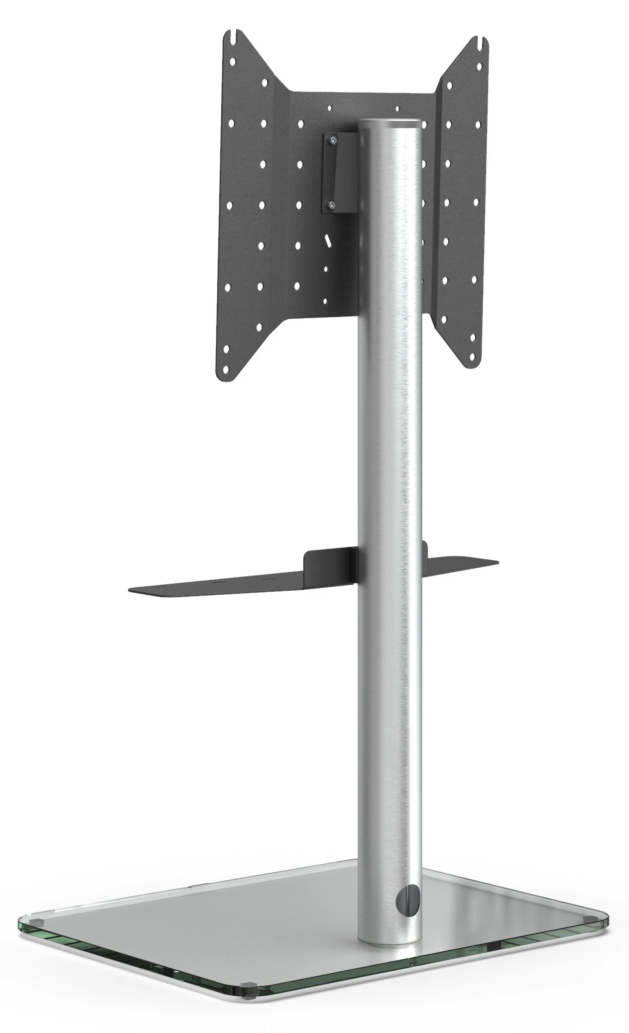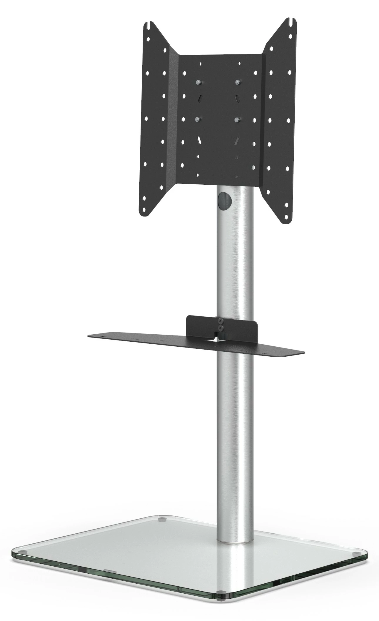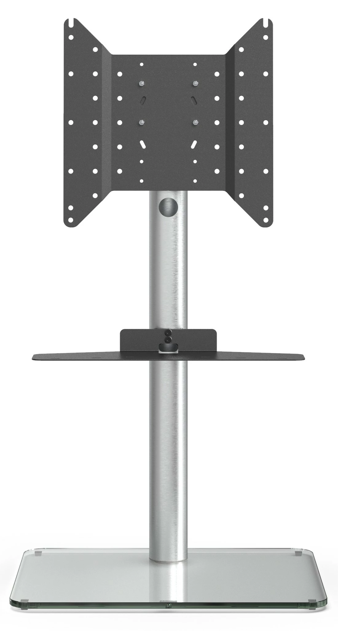 Die stabile Sockelplatte sorgt nicht nur für Stabilität und Sicherheit, sondern auch für eine Gesamtbelastbarkeit von satten 40 kg. Zur Auswahl stehen die Farbvarianten Schwarz- und Klarglas. Die Glasoberflächen sind extrem kratzfest und pflegeleicht.