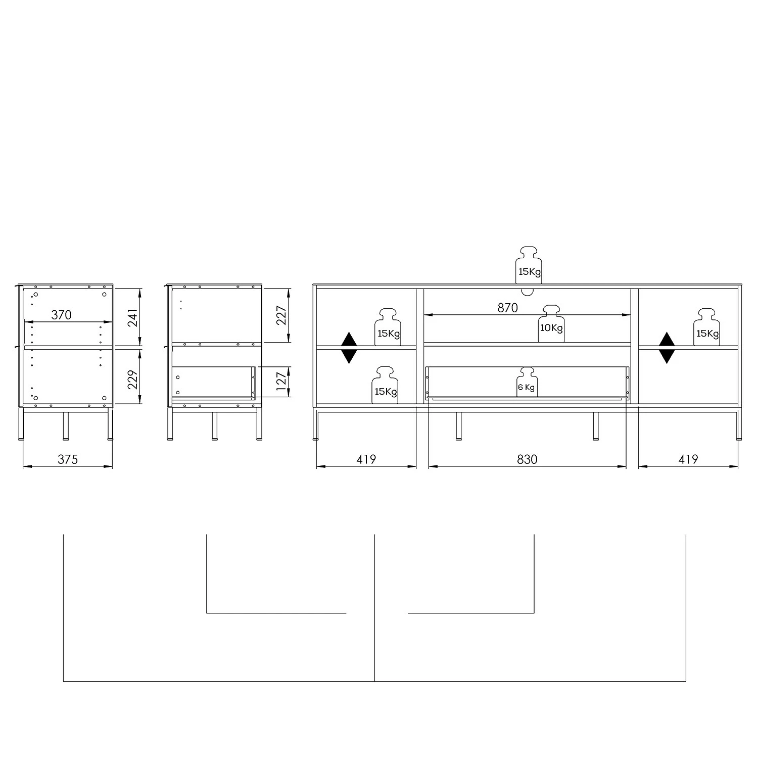 - Innenmaße Schubladen: 83 x 12,7 x 33,4 cm
