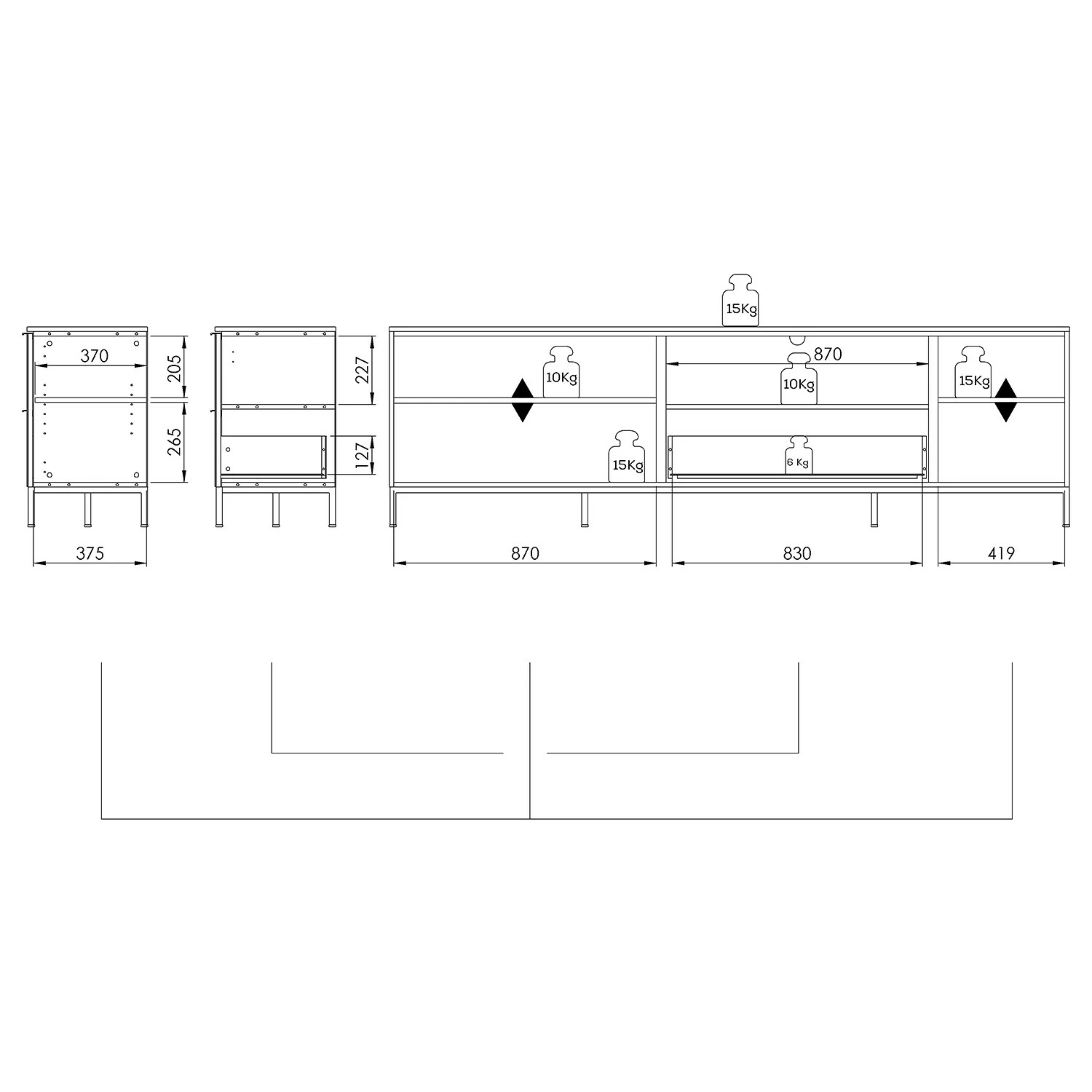- Innenmaße Schubladen: 83 x 12,7 x 33,4 cm