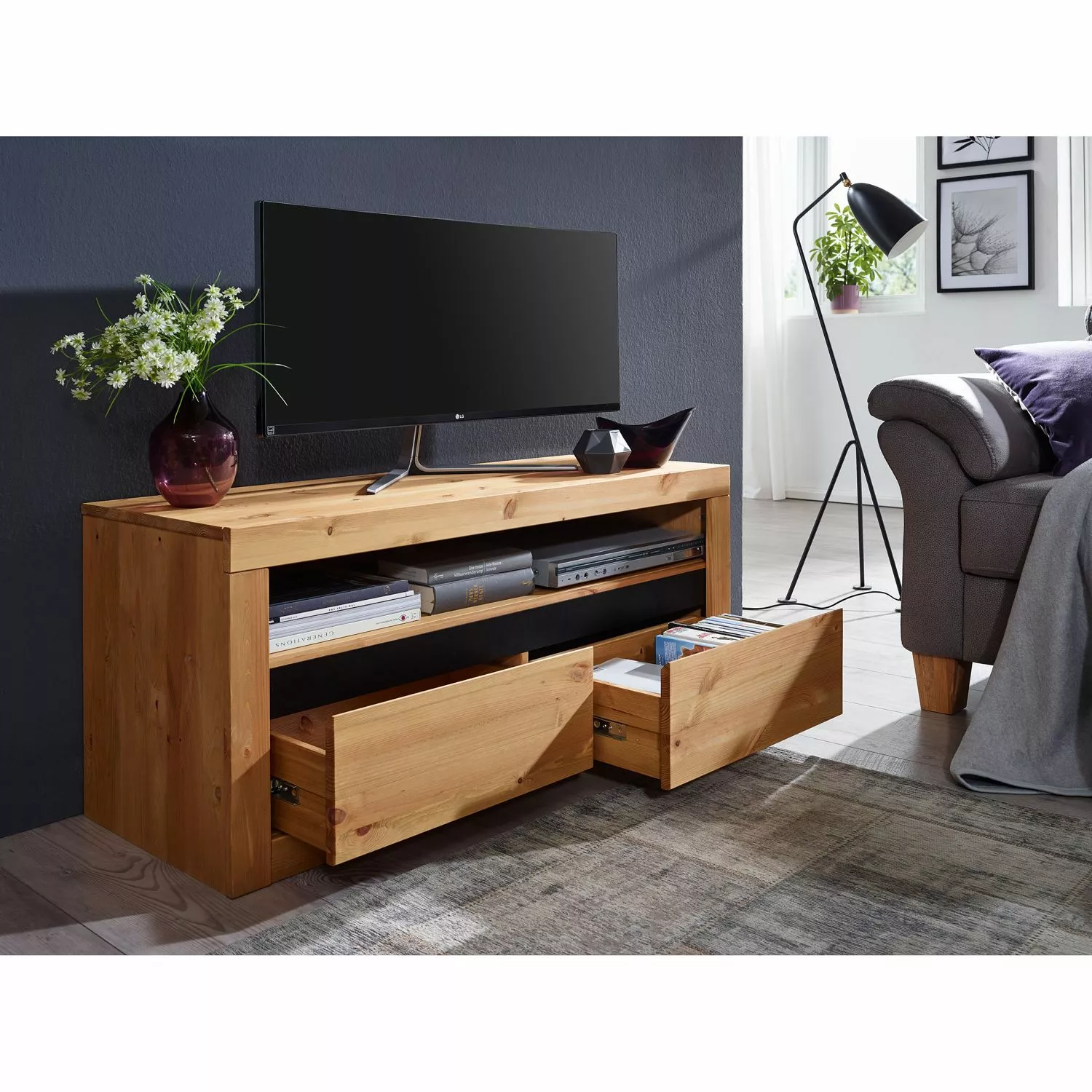 - Front & Korpus: Massivholz Kiefer, gebeizt