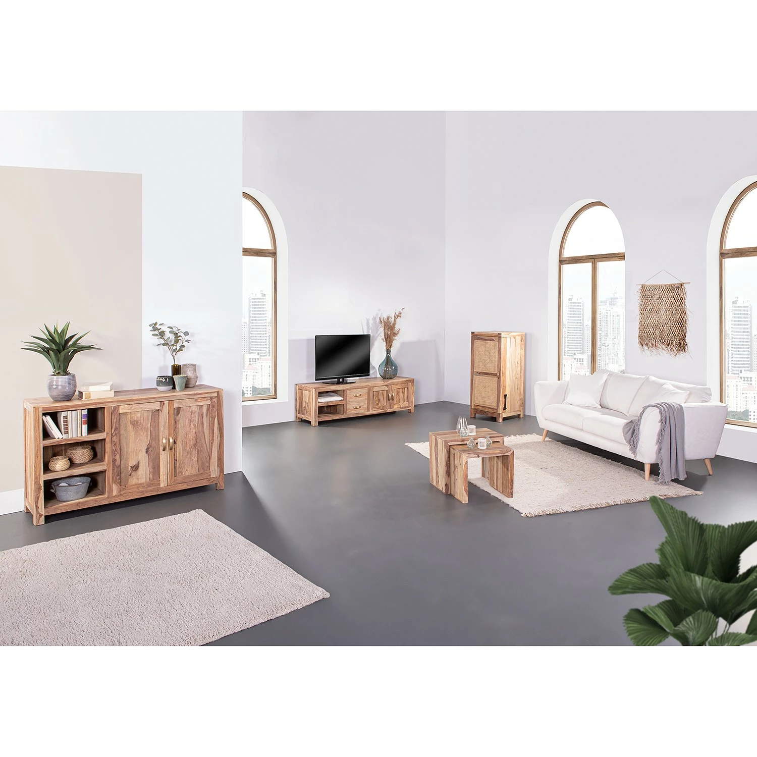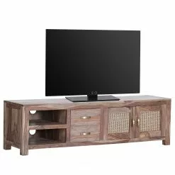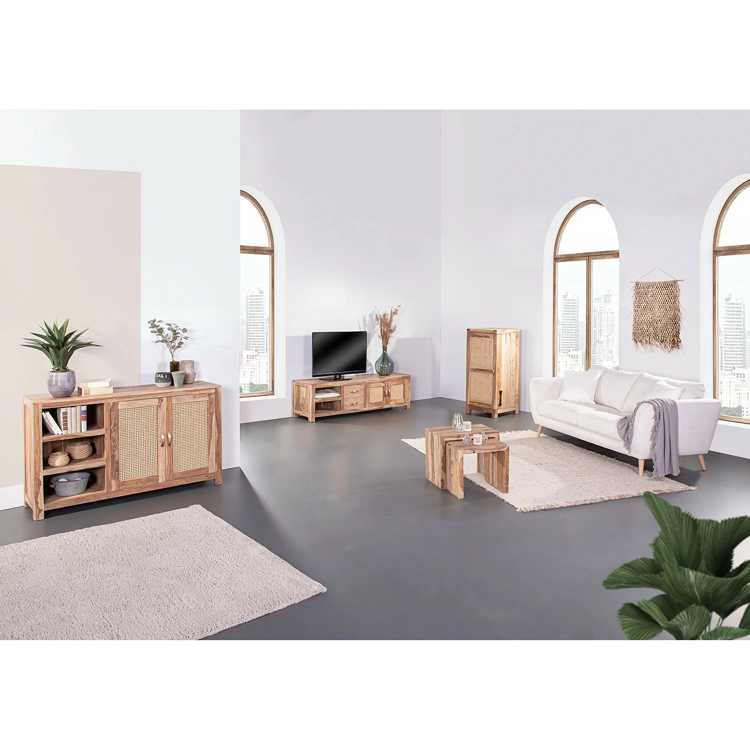 - Front: Rattan / Massivholz Sheesham, gebeizt & lackiert