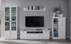 Ebuy24 Cent TV Tisch – Cent TV Tisch mit 2 Schiebetüren und 1 Ablage aus Eiche, weiss gelaugt.