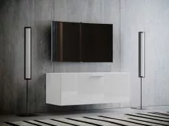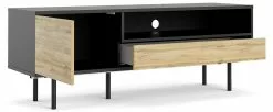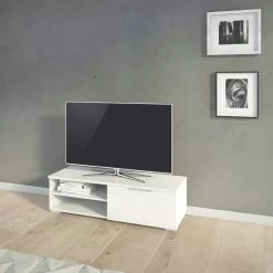 Ebuy24 Fur TV Tisch – Fur TV Tisch mit 2 Schiebetüren und 1 Schublade, matt weiß / grau.