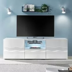 Loftscape TV-Lowboard Wilander – Inkl. Beleuchtung – Hochglanz Weiß / Eiche Nelson Dekor
