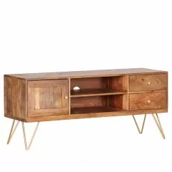 Naturoo TV-Lowboard Yearby – Mango massiv – Mango / Gold