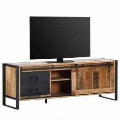 - Korpus & Schiebetür: Massivholz Mango sägerau, gebeizt & lackiert