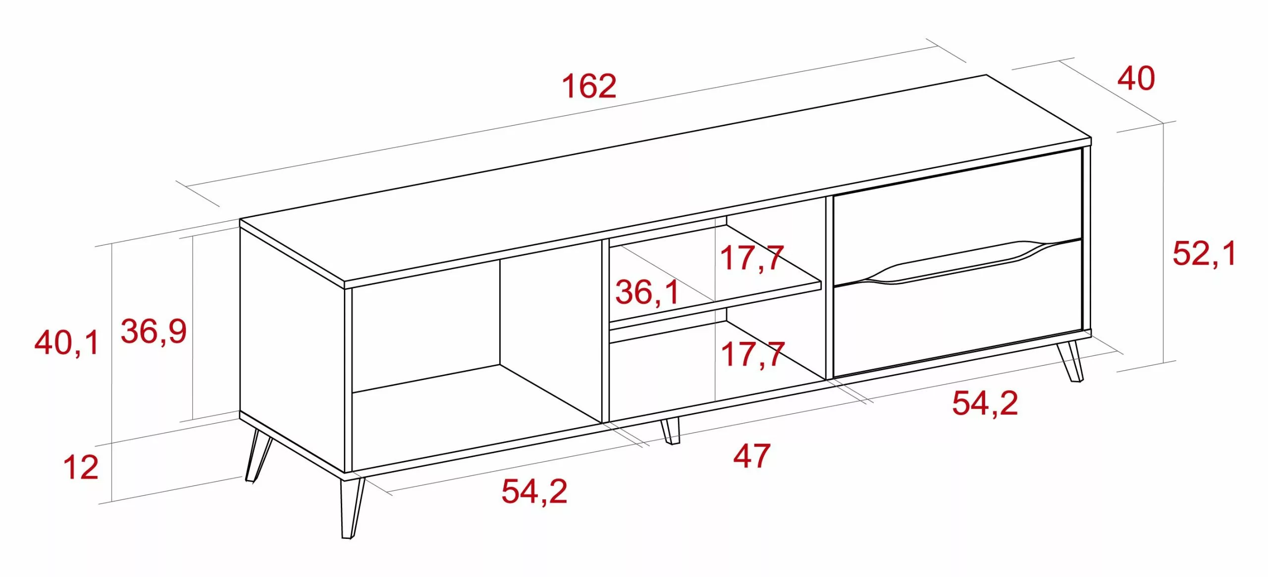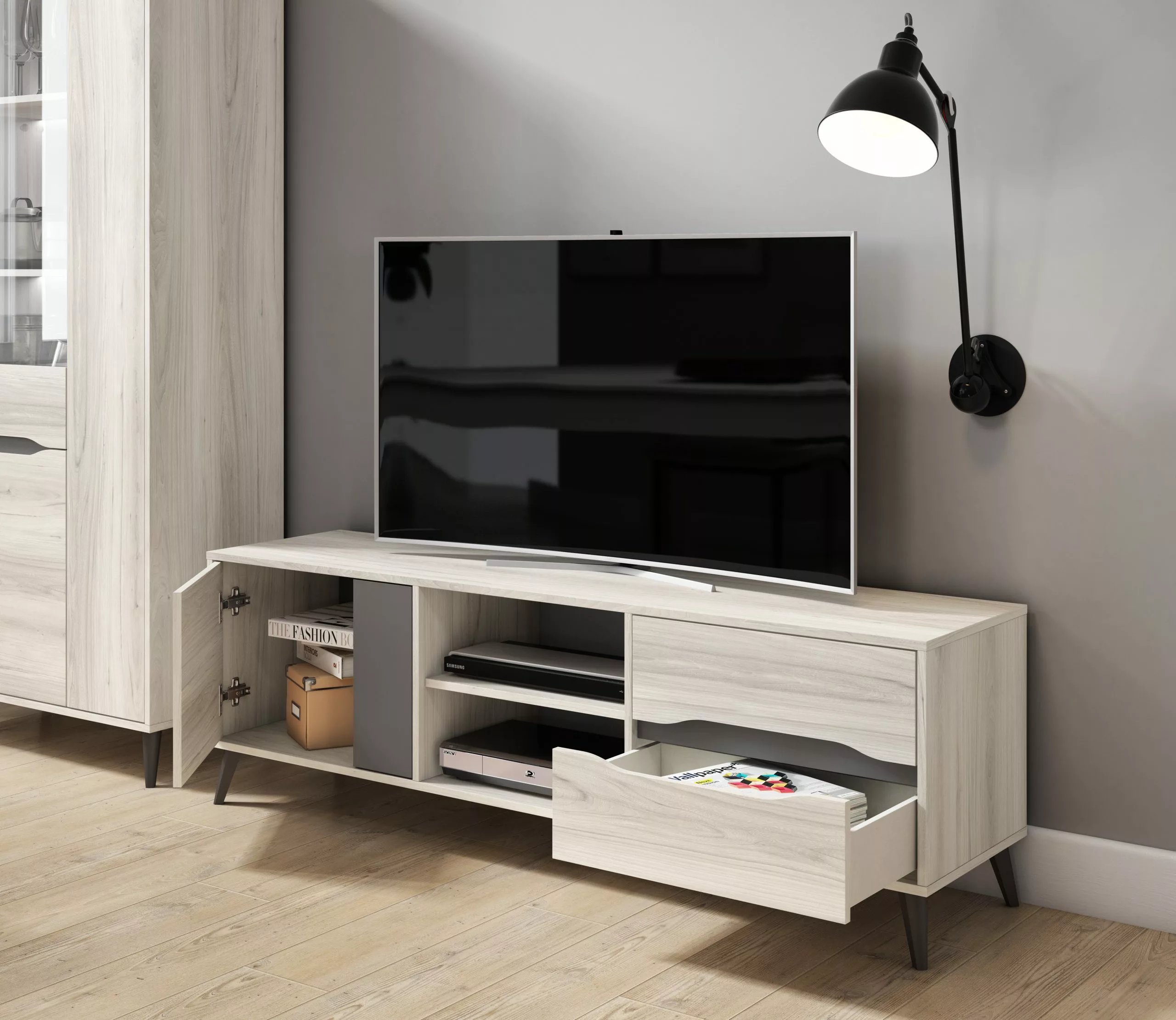 Die Größe in Kombination mit der Funktionalität und dem Design machen das Möbel TV160 KAI elegant und ideal in jedem Aufenthalt platziert werden.