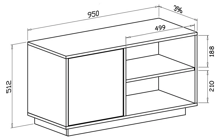 Breite: 95cm X Tiefe: 40cm Höhe: 51cm (mit montiertem Sockel)