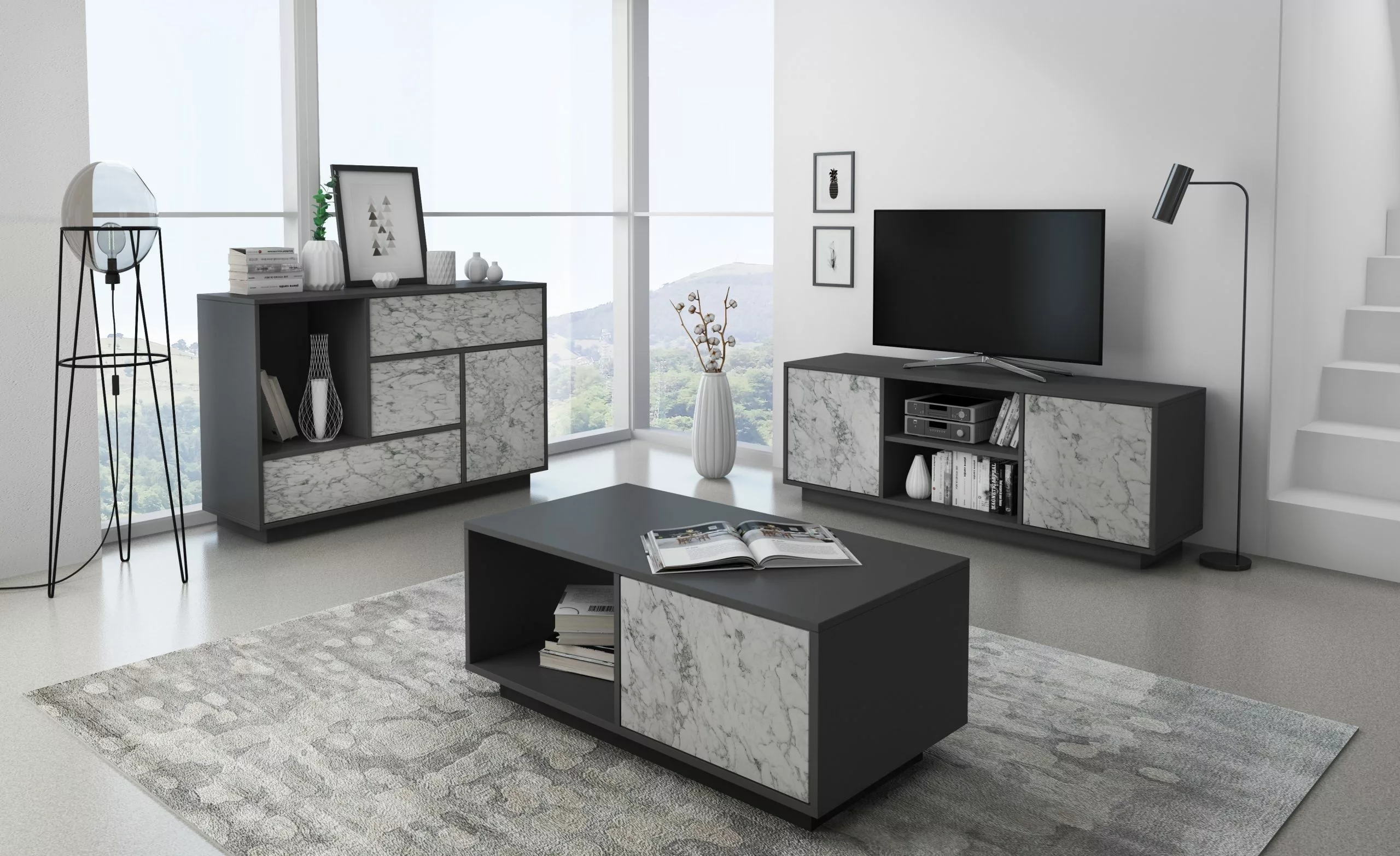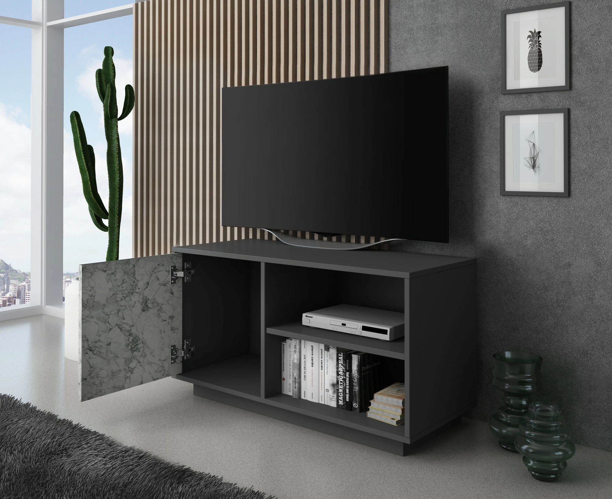 Die Größe in Kombination mit der Funktionalität und dem Design machen den TV-Schrank 100 MARMOL elegant und ideal, um Ihr Wohnzimmer einzurichten.