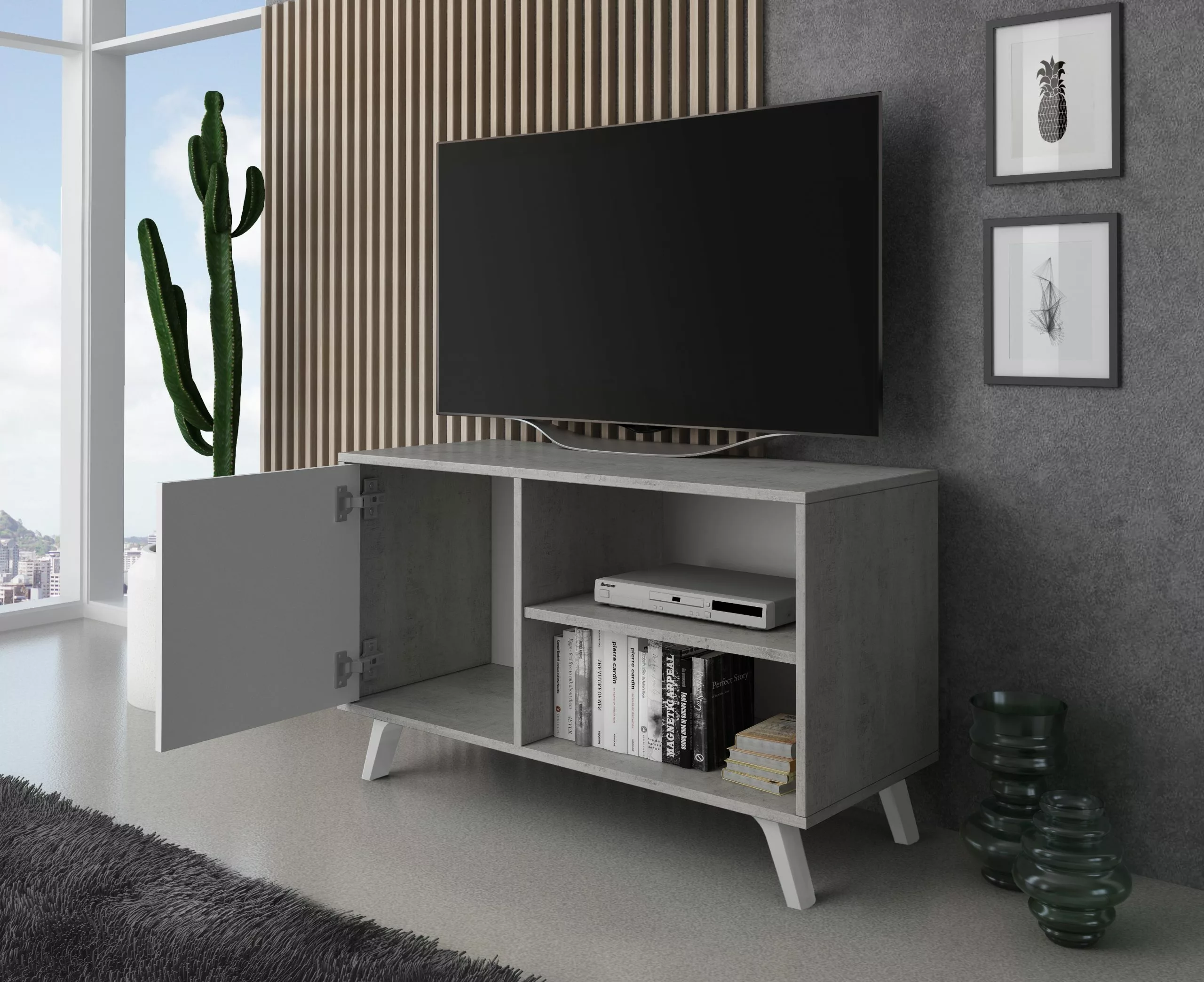 Die Größe in Kombination mit der Funktionalität und dem Design machen den 100 WIND TV-Schrank elegant und ideal, um Ihr Wohnzimmer einzurichten.