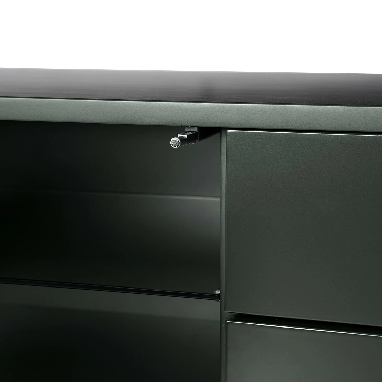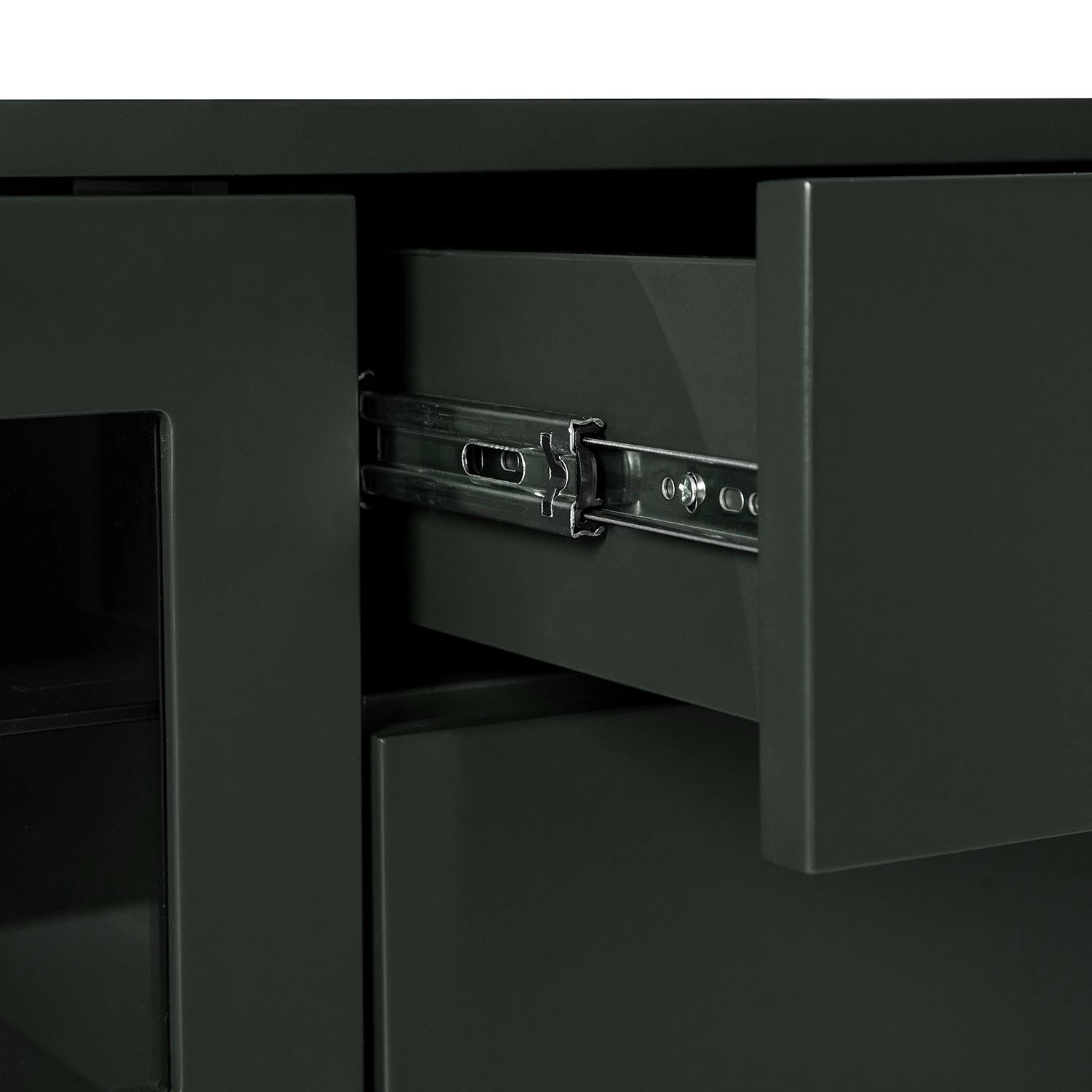 - Schubladen & Korpus: MDF (Mitteldichte Holzfaserplatte), lackiert