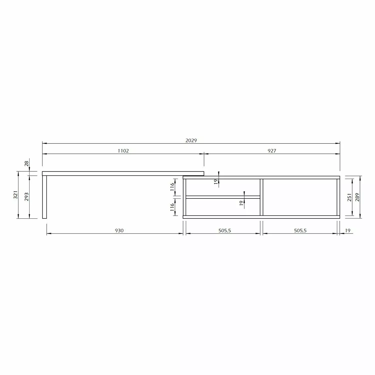 - Mit Lowboard Echo ist Ihr Wunsch Programm: Seine beiden Hauptteile lassen sich auf einer versteckten Führungsschiene bewegen, sodass Sie das TV-Möbel beliebig ausziehen und sogar über Eck platzieren können.