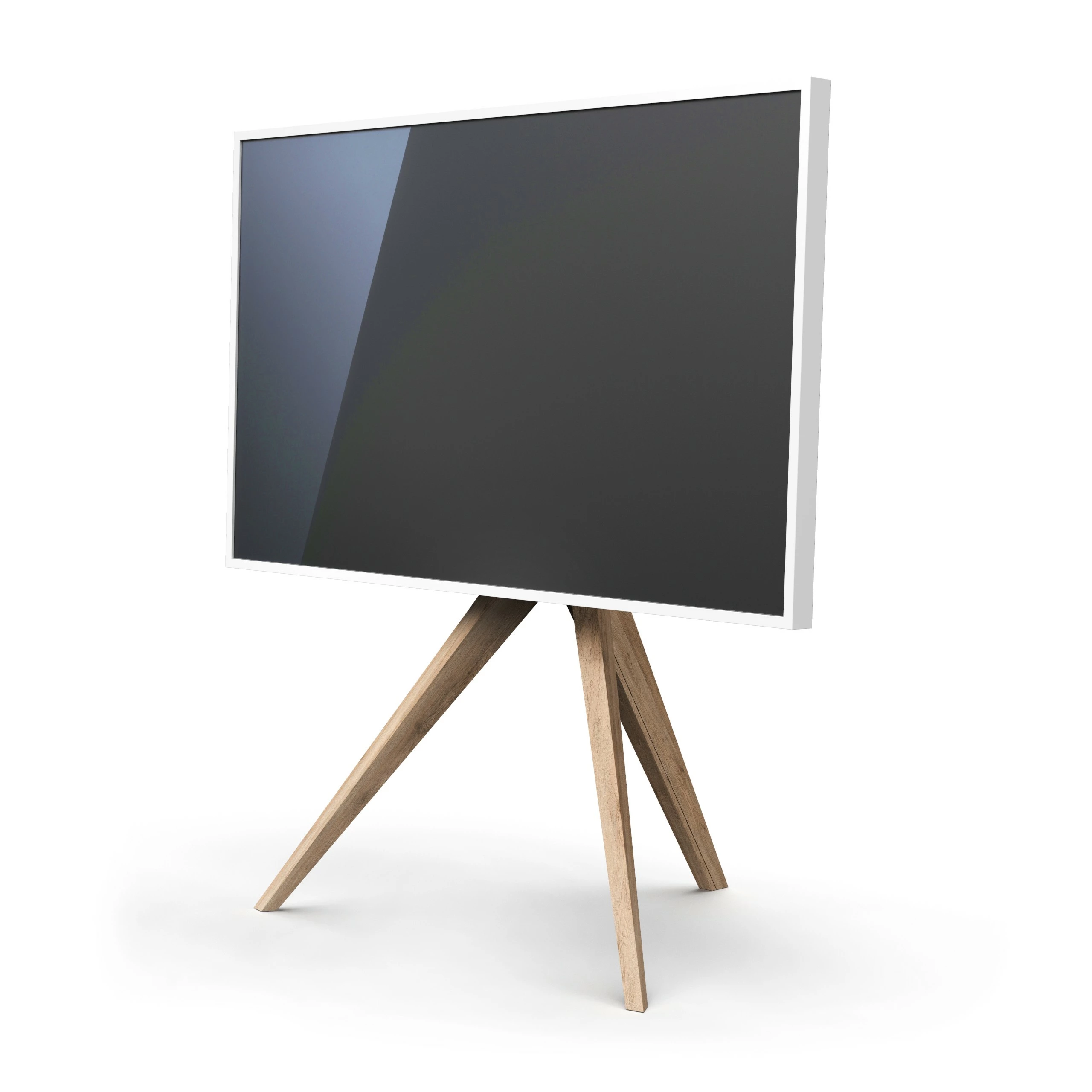 Die Standfüße des eleganten Tripods sind aus dem Vollen gefertigt und vermitteln den Premium-Anspruch des TV-Stands. Das Massivholz ist entweder in der natürlichen Eichen-Färbung erhältlich oder kann in Schwarz oder Grau bestellt werden. Die hohe Fertigungsqualität sorgt dabei nicht nur für Stabilität und Sicherheit, sondern auch für eine Gesamtbelastbarkeit von satten 40 kg.