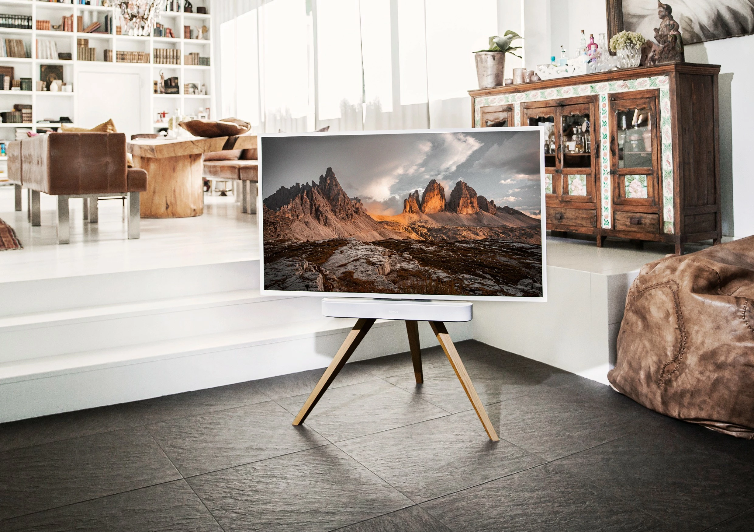 Für alle, die den Klang des Fernsehers mit einer Soundbar erweitern möchten, gibt es optional unterschiedliche Soundbar Adapter zur perfekten Anbindung. So können die B&O Beosound Stage, die Sonos Arc oder Sonos Beam, verschiedene Bose Modelle sowie Soundbar-Modelle weiterer Hersteller mit dem jeweils passenden Adapter angebracht werden.