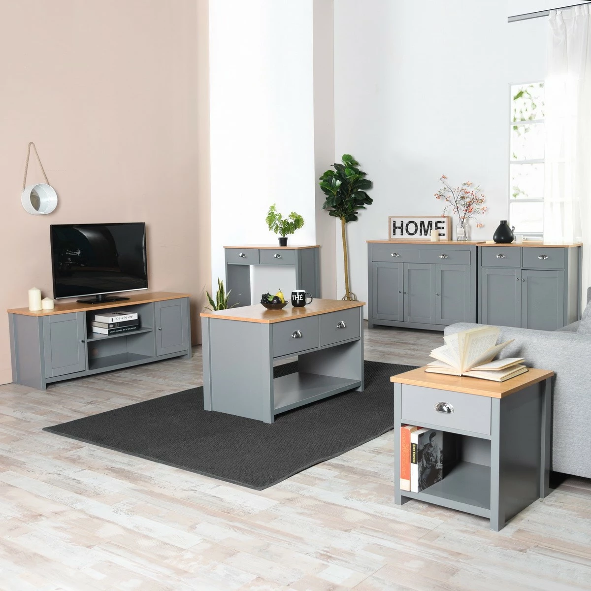 Seine klassische Kombination aus Farbe, Grau und Holz ist neutral genug, um jeden Einrichtungsstil zu ergänzen. Das Grau ist gemütlich und das helle Holz sehr warm. Dies ist die perfekte Kombination für ein einladendes Wohnzimmer.