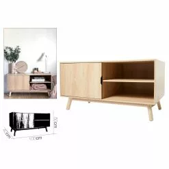 Dieses hübsche Möbelstück bietet viel Stauraum, darunter zwei Schranktüren mit Griffen, in denen sich ein Regal befindet, in dem Sie Dokumente aufbewahren können, und ein zentrales Regal, in dem Sie alle Ihre Geräte wie Ihre Box oder Ihre Spielkonsole ablegen können.