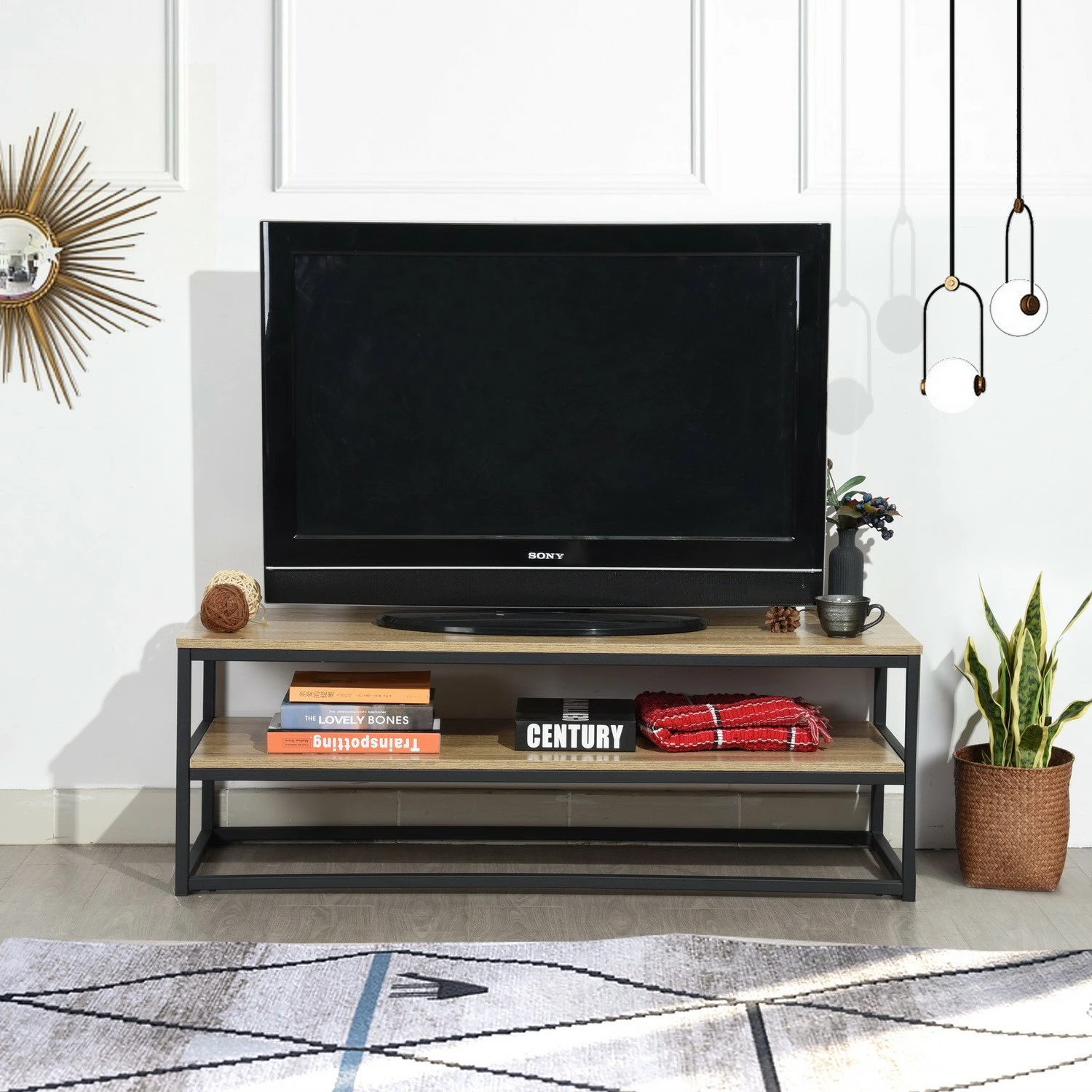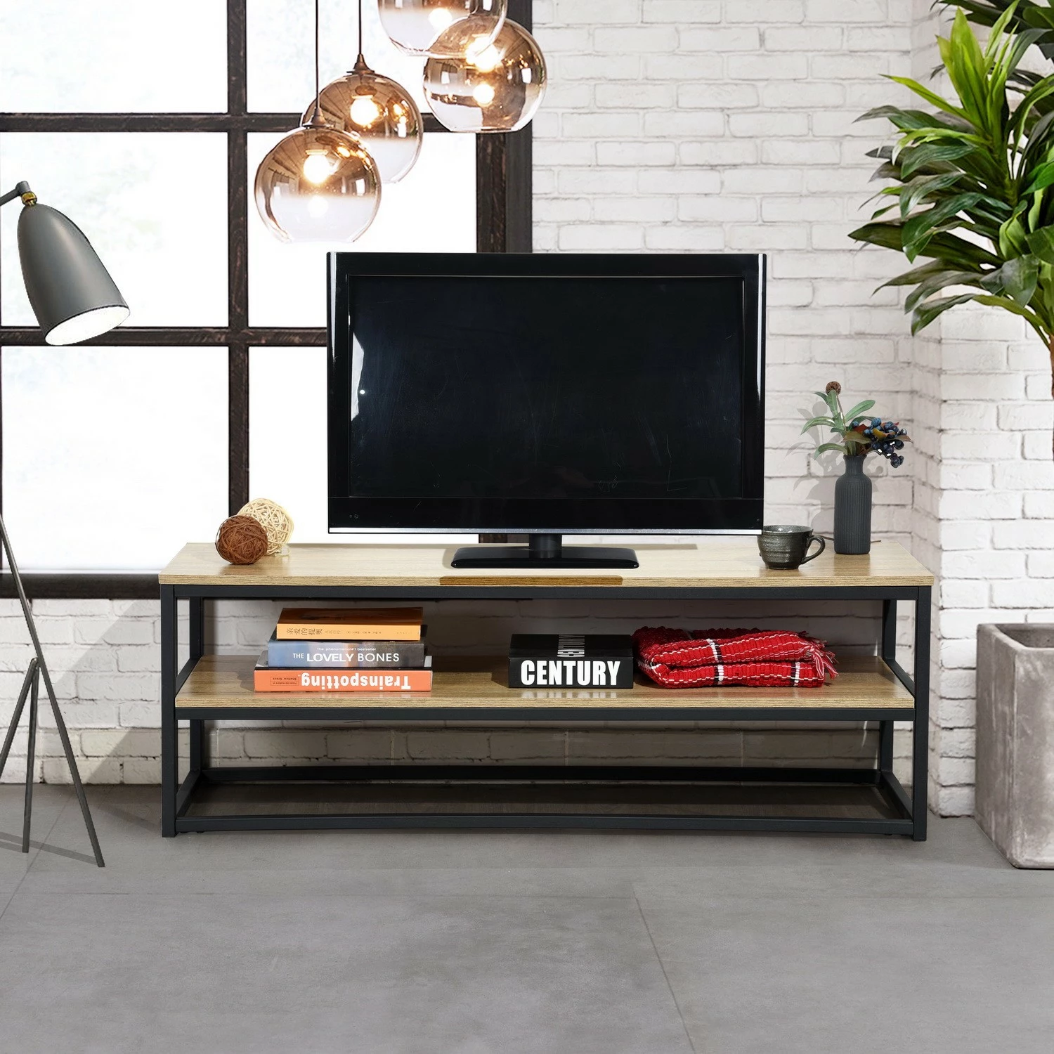 Dieses Aufbewahrungsmöbel im skandinavischen Stil eignet sich ideal als TV-Möbel und ist dank seines Stauraums sehr funktional.