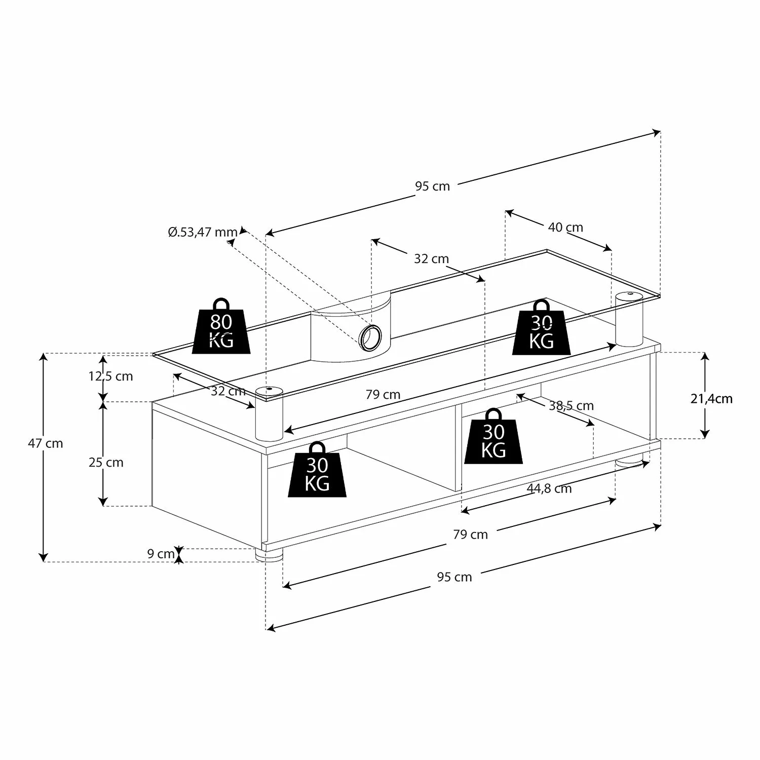 - Korpus: MDF (Mitteldichte Holzfaserplatte), beschichtet