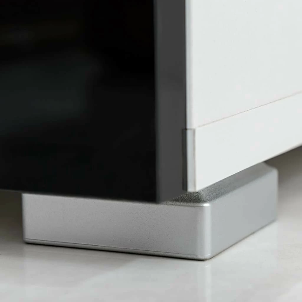 Die Montage ist einfach. Die Lieferung umfasst auch Montagezubehör. Bitte beachten Sie, dass das TV-Möbel aus zwei Schränken besteht.