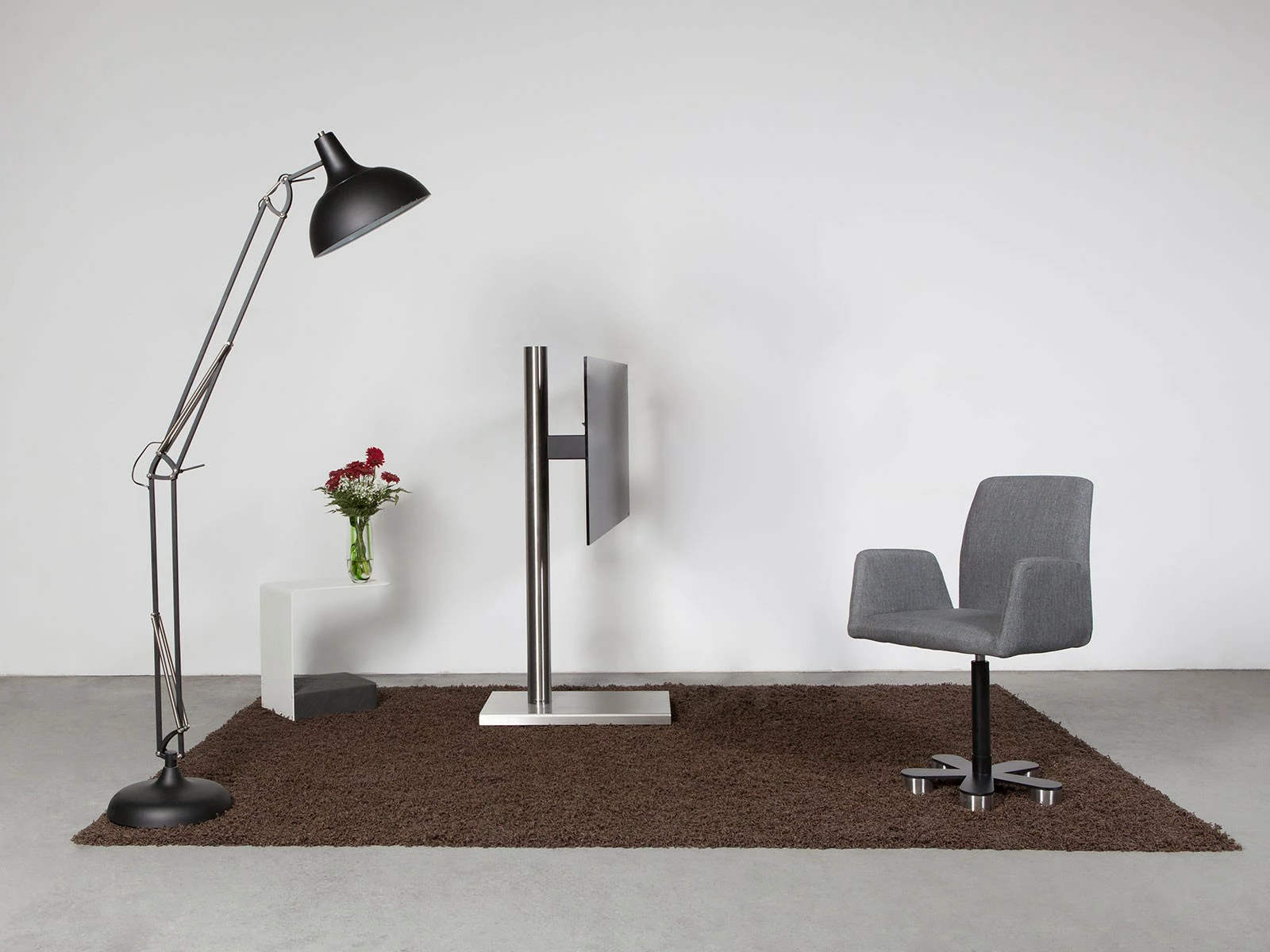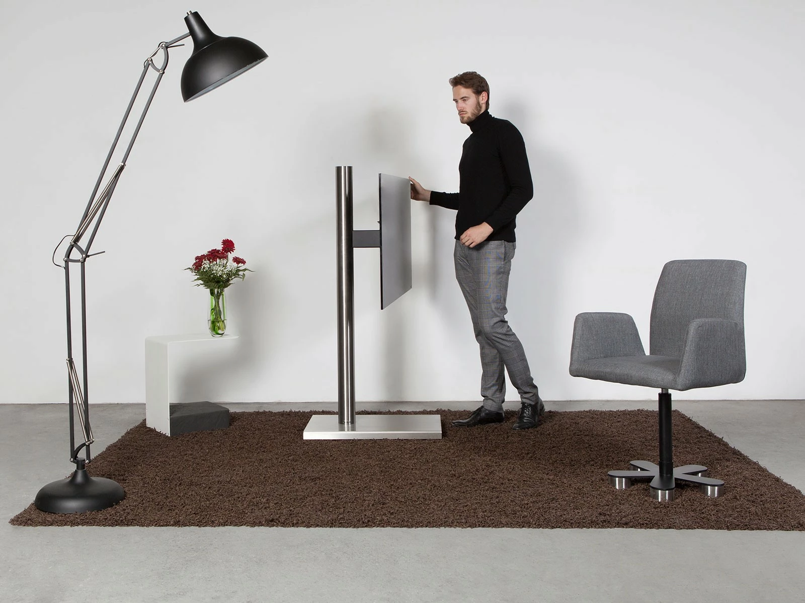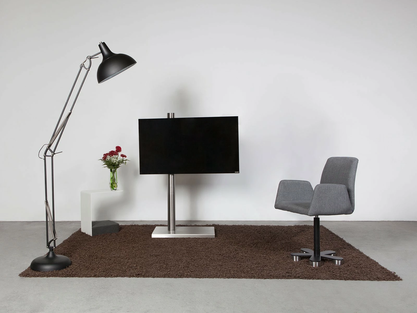 Der TV-Halter art118-ES aus Edelstahl fein gebürstet ist ein Schmuckstück für Ihren Fernseher. Die optionale Schwenkfunktion und die unsichtbaren Rollen bieten ein hohes Maß an Flexibilität. Unsichtbare Kabelführung.