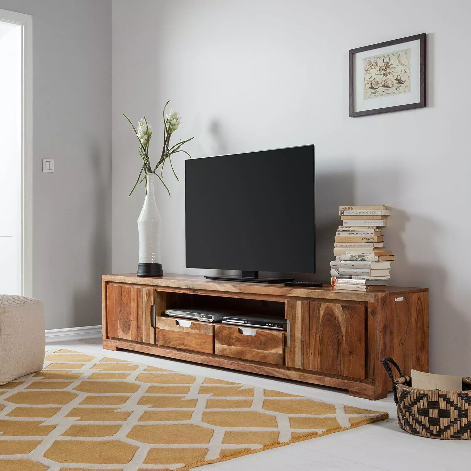 - Lieferumfang: TV-Lowboard ohne Dekoration